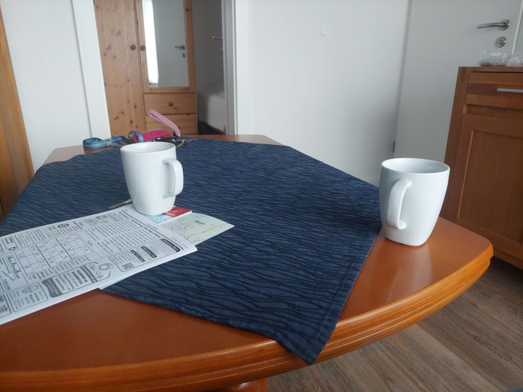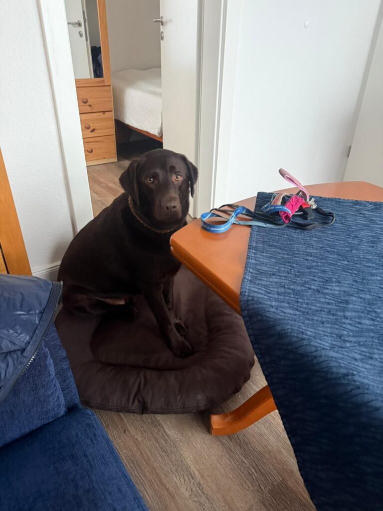 Pepe ist wohl etwas bekümmert wegen der steifen Brise. Wohnung ist super. Vollkommen ausreichend für uns. Schnell die Sachen verstauen…