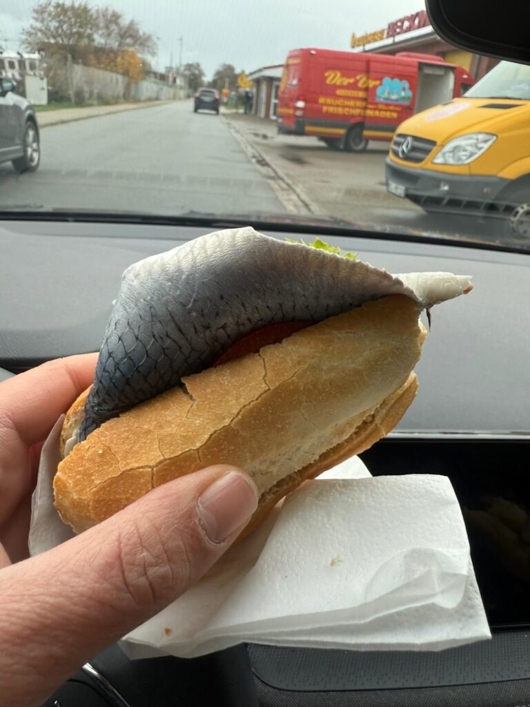 Erstmal Frühstück/Mittag. Lecker Fischbrötchen für die Chefin🫠.